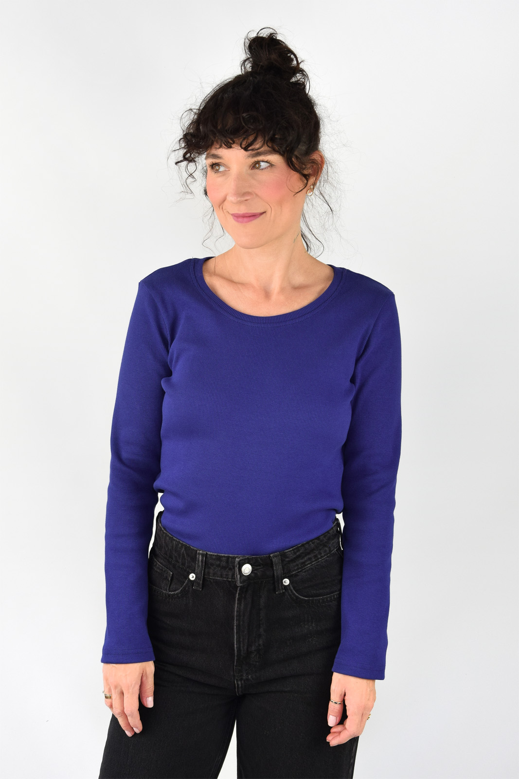Bluzka z długim rękawem, uszyta z dzianiny o strukturze prążkowej.