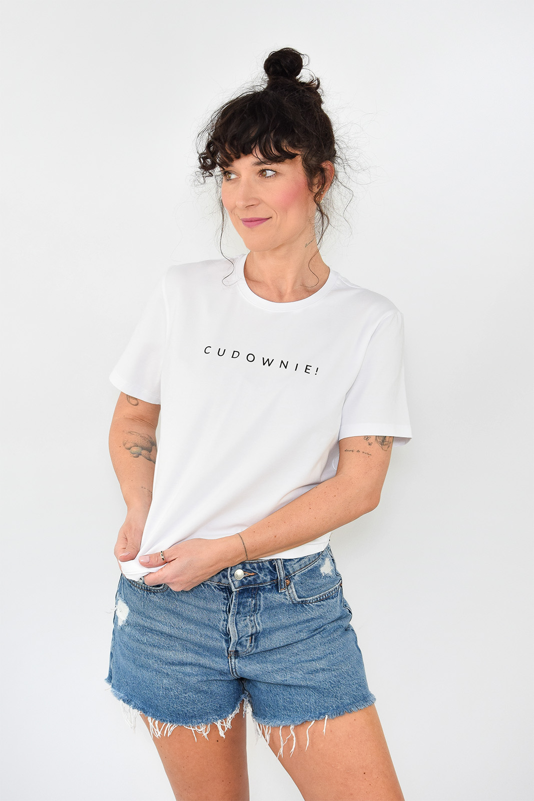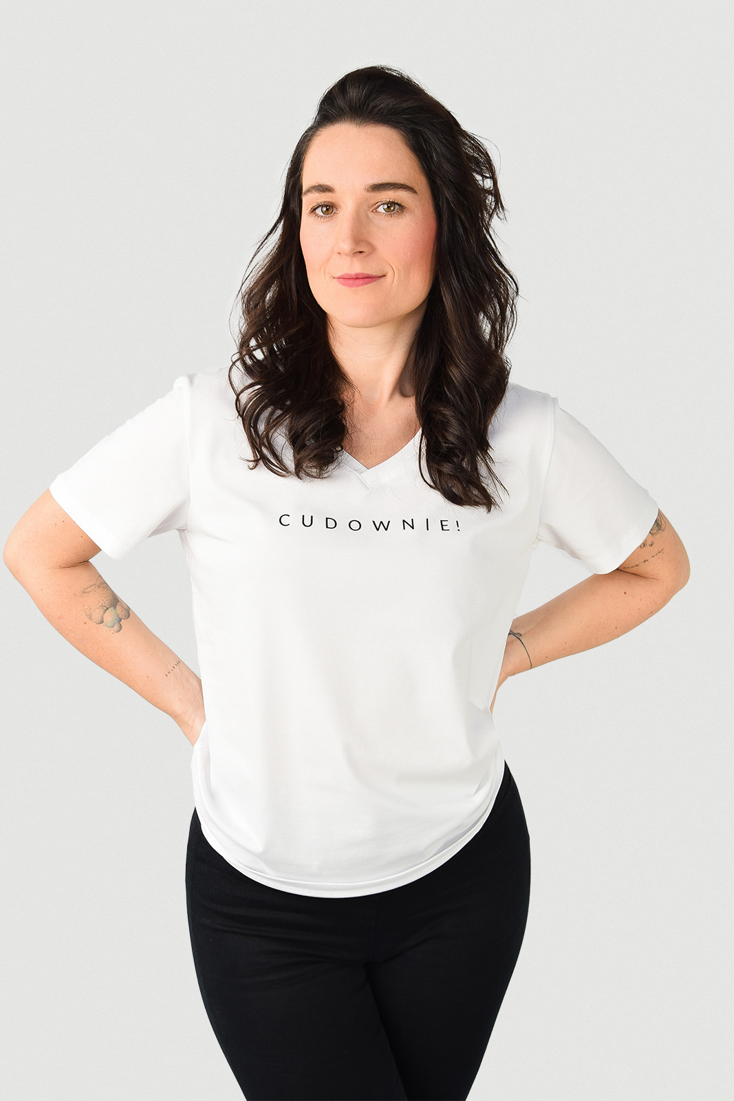 T-shirt oversize biały z czarnym napisem CUDOWNIE!