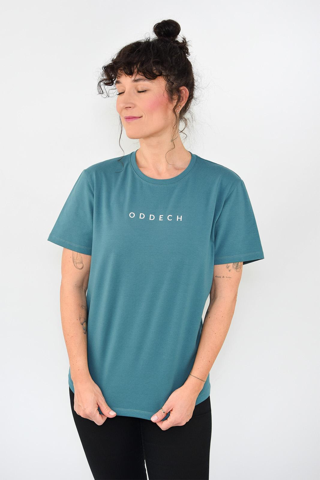 T-shirt oversize morski z białym napisem ODDECH