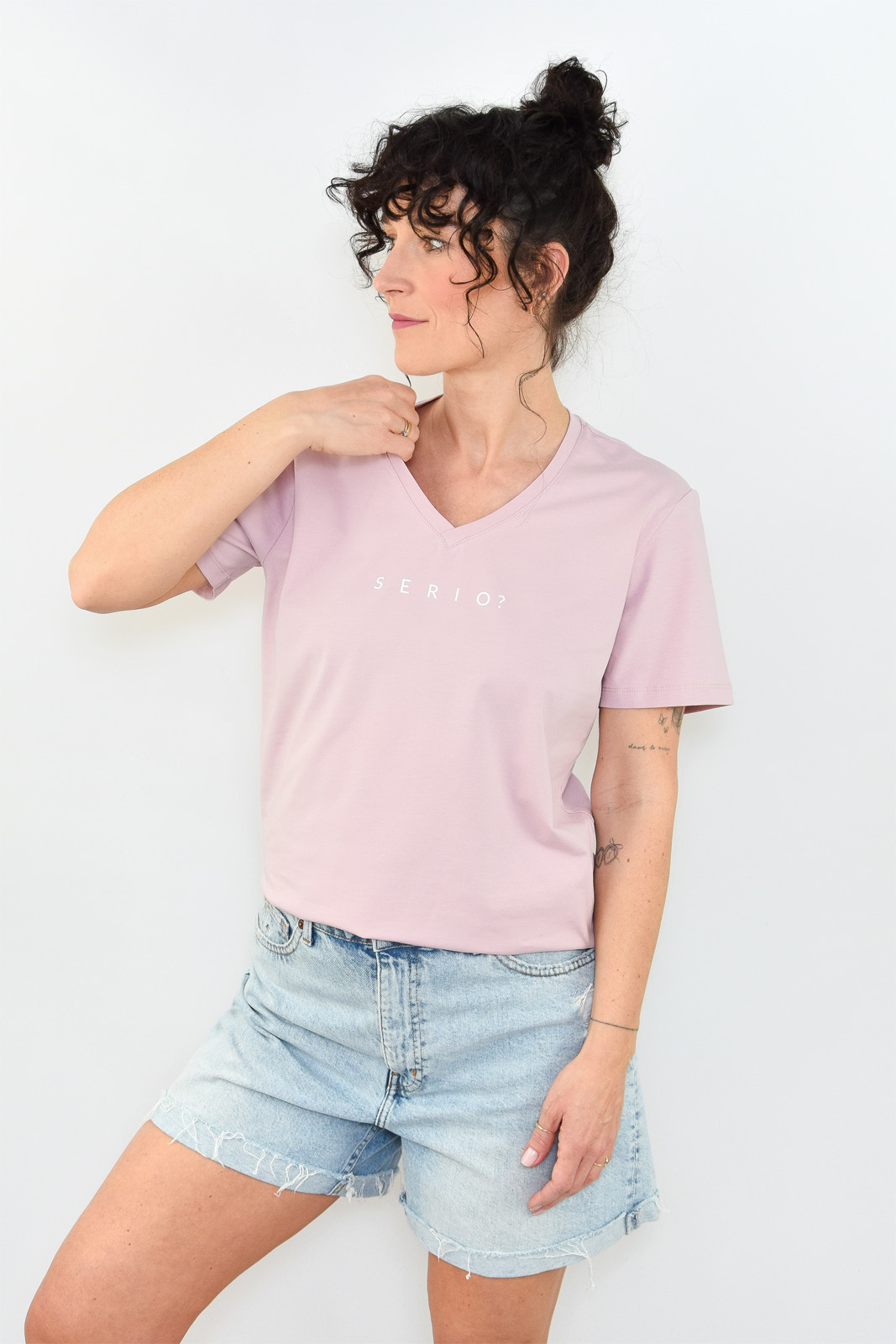 T-shirt oversize pudrowy róż z białym napisem SERIO?